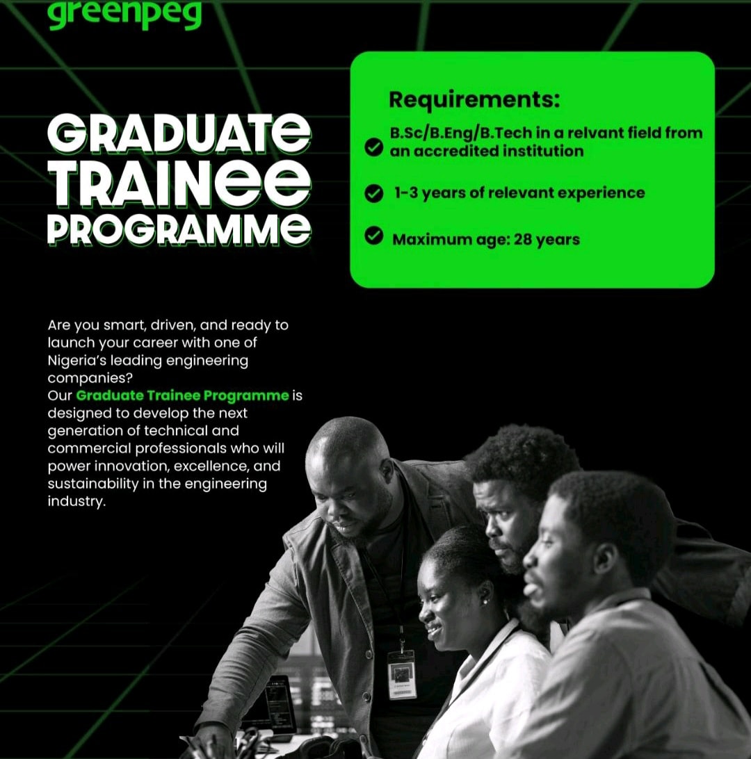 Send your CV to careers@greenpeg.com using Graduate Trainee as the subject of the mail.
