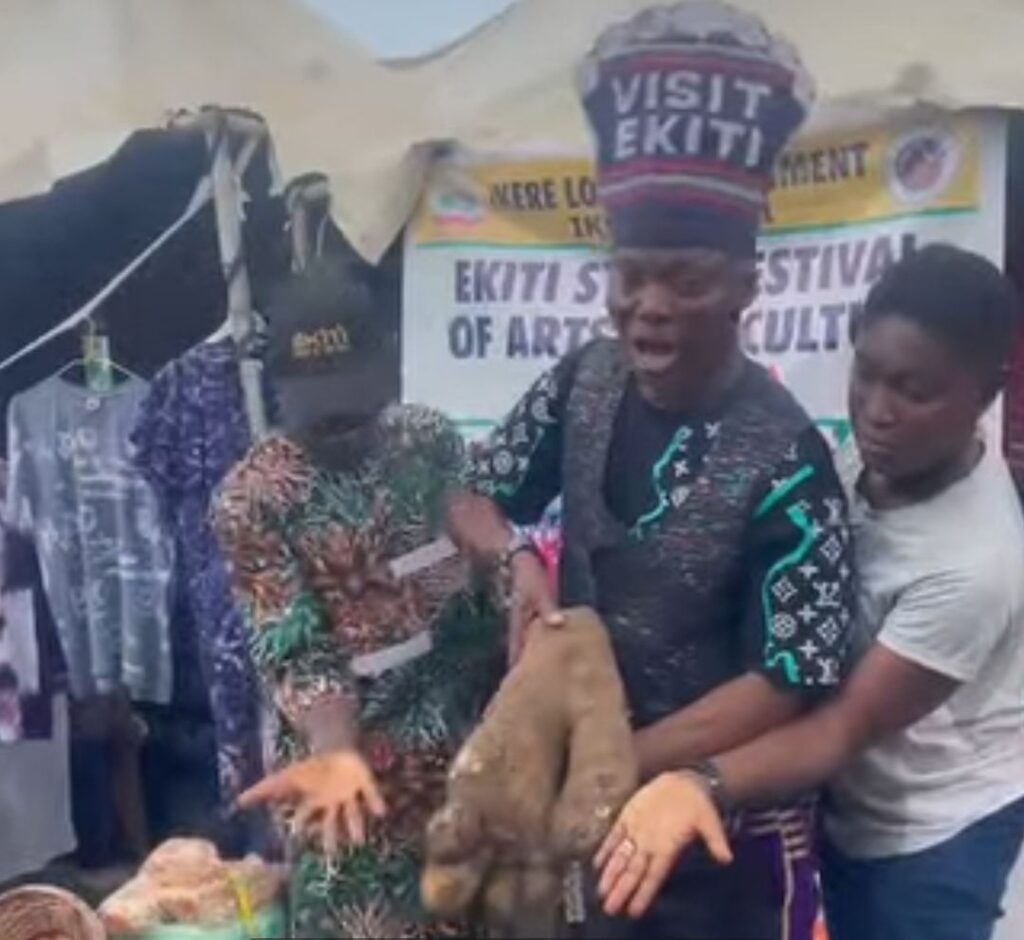 In a captivating blend of agriculture and artistry, the Ekiti State Bureau of Tourism Development has unveiled a bizarre yet enchanting discovery at the ongoing EKIFEST 2025—a yam tuber eerily resembling a human left hand, unearthed at the Ikere Local Government Exhibition Stand and hailed as nature’s latest tribute to the state’s fertile lands. Led by Director-General Barrister Wale Ojo-Lanre, the bureau’s team stumbled upon the peculiar specimen during a tour of the Arts and Culture Exhibition Pavilion, instantly sparking wonder among visitors, experts, and officials who flocked to witness this agricultural anomaly firsthand.