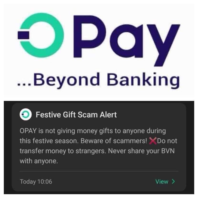 The statement read, “Opay is not giving money to anyone during this festive season. Beware of scammers, do not transfer money to strangers, never share your BVN to anyone.”